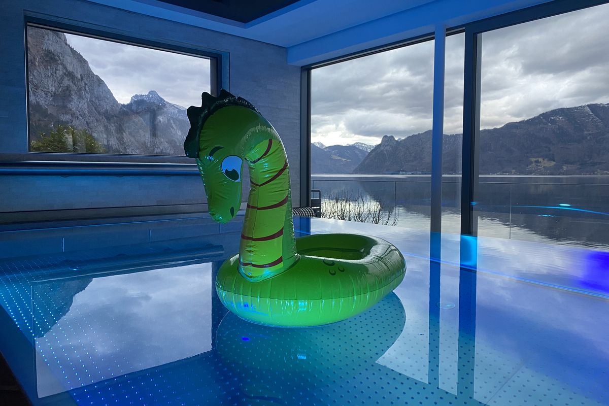 One of the highlights is definitely our infinity indoor pool. Equipped with a counter-current system, nothing stands in the way of swimming your lengths in wonderful temperatures with a view of the deepest and sometimes cold Traunsee. The pool also has 3 massage jets, so both attractions can be easily switched on directly in the pool.
